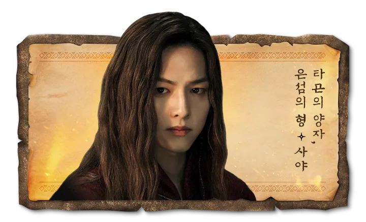 사야는 은섬의 쌍둥이 형으로 아스달의 정치인 다운 잔혹한 성격의 소유자.