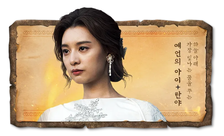 씨족 어머니의 후계자이나 어린 시절 꿈을 만나지 못합니다. 아스달로 끌려와 점점 자신의 능력을 깨우게 되어 주문을 걸고 속마음을 투시하며 예지를 할 수 있게 되고 타곤과 태알하의 강요로 반란 세력에 가담하게 되어 대제관에 오릅니다.
